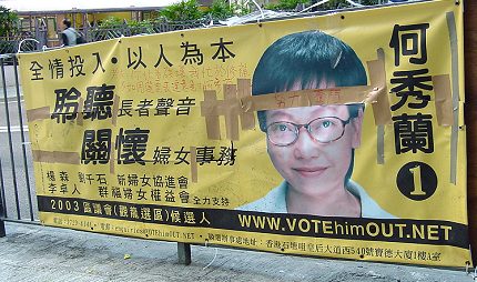 雖然這些宣傳橫額受損,但何秀蘭沒有將他們丟棄。她和助選團將這些橫額親手修補,同時加上了點點回應。