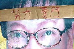 在何秀蘭的臉上的破痕,現在已被她親手寫的「努力 奮鬥」頭巾蓋上。